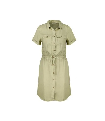 La robe chemise est une pièce mode indispensable dans la garde-robe estivale. Notre modèle ALARHA est boutonné sur le devant, avec la taille soulignée par un élastique et un lien en tissu à nouer. Sa coupe droite convient à toutes les morphologies. – Composition : 100%VISCOSE