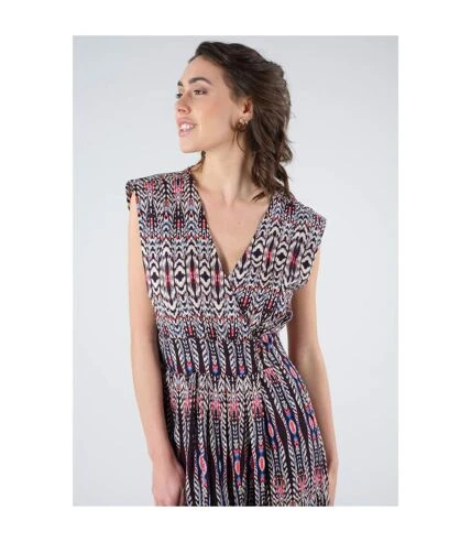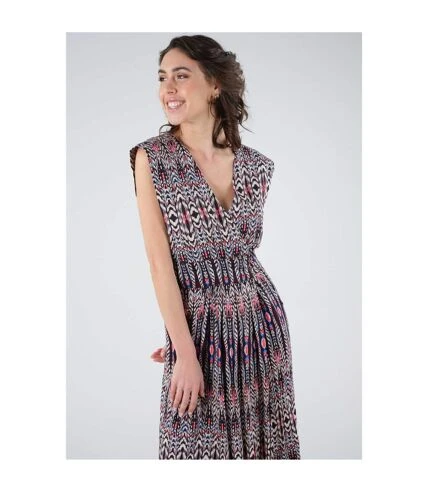 La robe midi IRMAH sans manches vous assurera confort et style. Son imprimé géométriques apportera une touche ethnique à votre look. – Composition : 100%VISCOSE