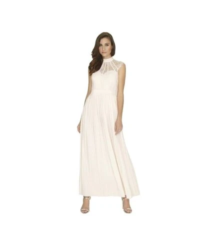 - Robe longue ave corsage en dentelle, mancherons et jupe plissée