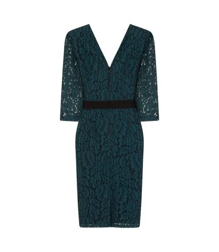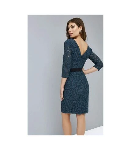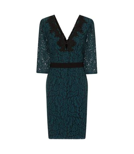 - Robe moulante en dentelle, avec taille et encolure en dentelle appliquée contrastante