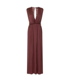 - Maxi robe à décolleté plongeant et dos en dentelle ajourée