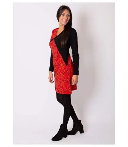 Portez cette robe manches longues mi-saison pour toutes occasions.Associée à un perfecto, en version ville et pour aller au bureau ou avec des talons pour une soirée automnale.On aime son imprimé de couleur rouge orangé sur le devant et au dos de la robe, très tendance cette année.Affirmez votre tendance ethnique grâce à cette robe en coton, pratique et confortable aux imprimés colorés.