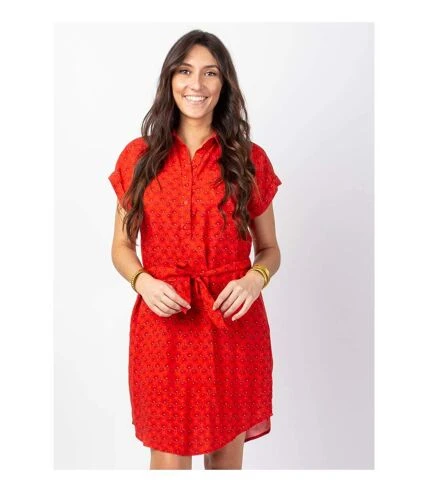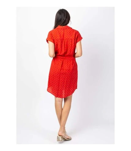 Robe chemise courte légèrement asymétrique. Très facile et agréable à porter avec ses manches courtes à revers ainsi que ses poches sur le côté, cette robe courte sera pratique aussi bien en sortie de plage que pour se rendre au bureau.Son motif ethnique et la couleur lumineuse orange tendance illumineront votre quotidien!
