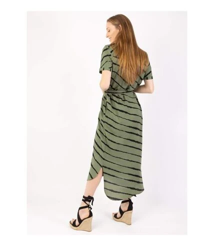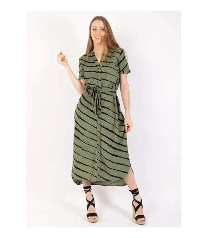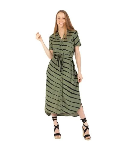 La robe chemise, l’incontournable de notre garde-robe!Porter en mode casual ou de façon chic et fĂ©minine, la robe chemise est idĂ©ale pour toutes les silhouettes.La robe longue Sheila Ă la coupe droite et au bas lĂ©gĂšrement arrondi adoucit l’ensemble. Petit col tunisien, manches courtes, cette robe chemise tieetdyed’une jolie couleur kaki aura tout pour vous sĂ©duire.