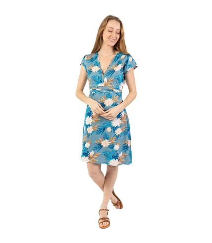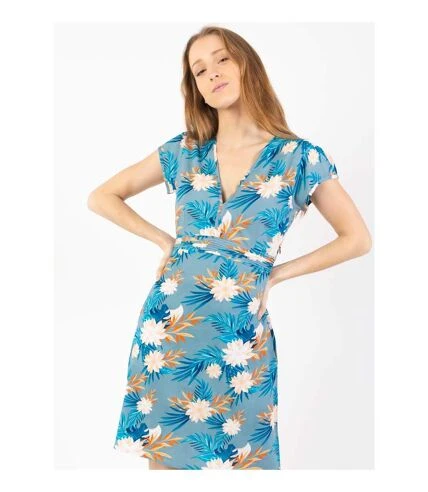Cette très belle robe courte en viscose aux motifs floraux colorés sera facile à porter pour le début de saison. Chic et romantique, on aime l’imprimé de cette robe gris/bleu légère et fluide.Sa coupe ajustée et ses petites manches courtes mettront en valeur votre décolleté et votre silhouette.