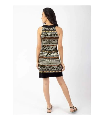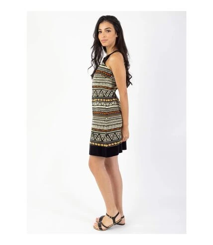 Cette robe courte à la coupe ultra originale et élégante sera très agréable à porter cet été.Son imprimé ethnique et graphique à tendance Africain à la finition unie noire sur le bas de la robe ainsi que sur le col rond donne un effet chic à cette robe légère en voile de coton.Adoptez un look casual en portant la robe avec une veste ou en plein été pour le bord de mer.