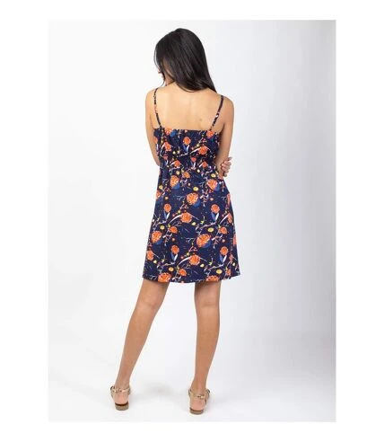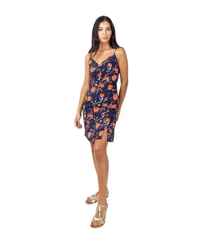 Cet été, suivez la tendance et portez la robe de plage très pratique et chic à la fois.Le modèle Ilona vous assurera confort et légèreté. En effet, cette robe en viscose est très facile à porter grâce à sa coupe droite et ses fines bretelles réglables.On aime son impriméfleuri lumineux sur fond bleu marine, qui se mariera très bien avec un blouson en jean et des sandales compensées.
