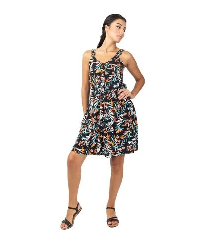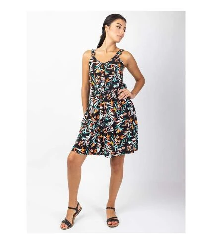 Facile à porter, cette très jolie petite robe courte à bretelles au motif tropical coloré s’invitera tout le long de la saison estivale. La coupe simple et féminine se portera facilement à tout moment de la journée.