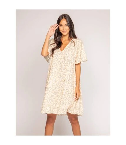 Cette robe courte Dona Lisa se décline dans une matière douce et vaporeuse, facile à porter toute la belle saison. L’encolure est soulignée par un décolleté en pointe plongeant, tandis que la coupe est évasée. La pièce gagne en volume à travers des volants légers placés au niveau des manches. Vous pourrez faire de cette robe votre nouveau must-have avec un blouson de motard zippé et une paire de sandales à talons.
