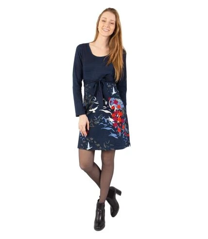 Evadez-vous en portant cette robe hiver très féminine à l’imprimé envoûtant.Cette robe courte aux manches longues apportera élégance à vos tenues.La ceinture unie peut se nouer devant ou dans le dos pour deux styles différents.
