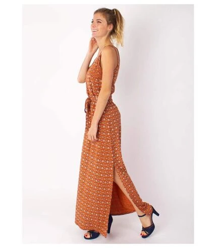 Cette magnifique robe longue en viscose, fluide et légère avec son motif ethnique tendance est très facile à porter pour l’été. En robe de plage, ou pour une soirée, elle s’adapte à toutes les morphologies.N’hésitez plus, optez pour sa couleur camel chic et résolument féminine!
