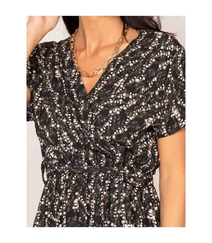 Cette robe légère imprimée Dona Lisa est un indispensable de la saison! La coupe portefeuille est éclairée d’un petit motif en all-over, créant un effet de contraste audacieux. Marquez votre taille en portant cette robe féminine avec sa ceinture assortie nouée et des sandales.