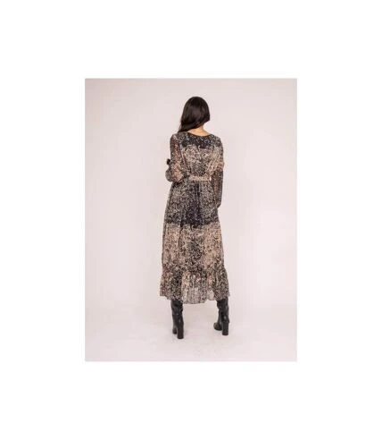 Cette robe imprimĂ©e Dona Lisa reprend l’un des modĂšles indispensables de la saison, rehaussĂ©e d’un imprimĂ© tendance. Elle offre un jeu de texture grĂące Ă sa matiĂšre semi-transparente, qui laisse deviner la peau au niveau des bras. La coupe portefeuille est Ă©clairĂ©e d’un motif trĂšs fĂ©minin, crĂ©ant un effet de contraste audacieux sur le fond beige. Marquez votre taille en portant cette robe avec sa ceinture assortie nouĂ©e, un blouson en cuir et des bottes.
