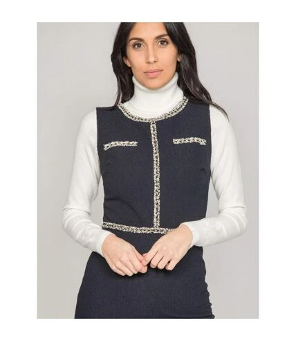 Avec cette robe courte habillĂ©e, Dona Lisa donne une interprĂ©tation contemporaine du style tailleur. Sa coupe fĂ©minine sans manches, munie d’une encolure ronde et de fausses poches passepoilĂ©es sur la poitrine, est Ă©clairĂ©e par des bordures brodĂ©es contrastantes. La piĂšce se ferme grĂące Ă une fermeture Ă©clair ton sur ton au dos. Enfilez cette robe en toute simplicitĂ© avec sa veste assortie UBAK et une paire de bottes ou d’escarpins.